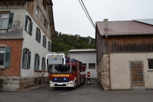 Großübung im Quellhof in Mistlau mit Drehleiter aus Crailsheim