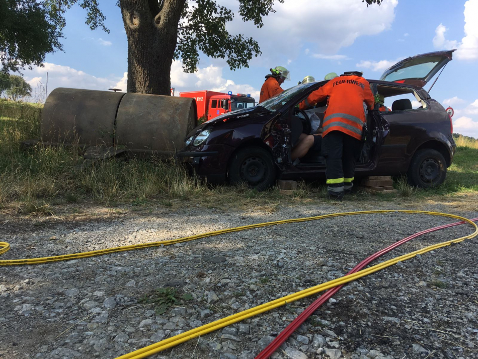 Bei der Brandbekämpfung und Löschwasserversorgung wurde die FFW Ilshofen mit einem Löschgruppenfahrzeug (LF 16) und einem Schlauchwagen in diese Übung einbezogen.